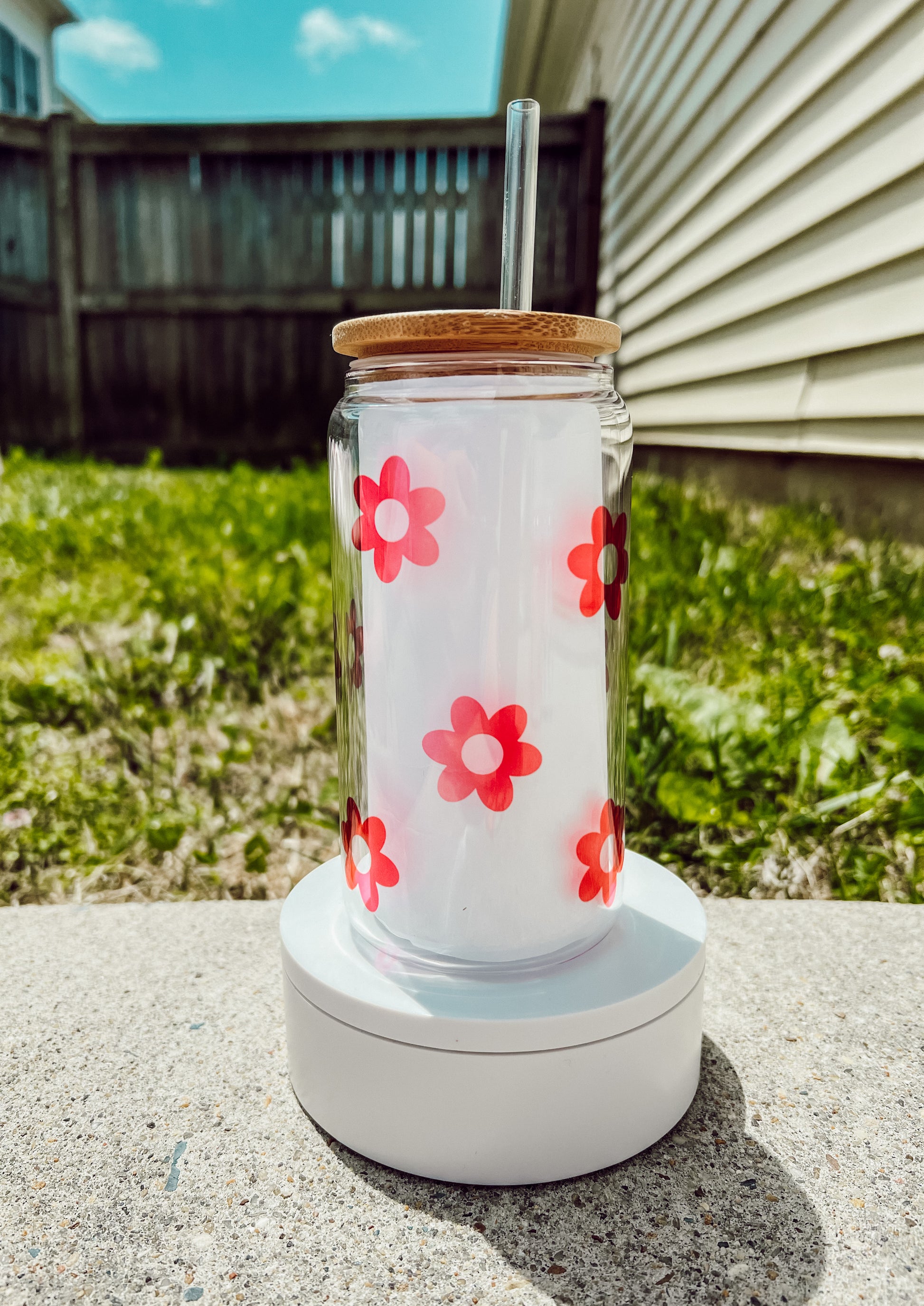 -16oz Cup cups with a bamboo lid and straw